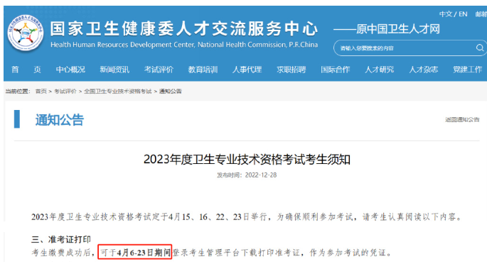 官方发布:2023年卫生资格考试准考证打印时间确定!