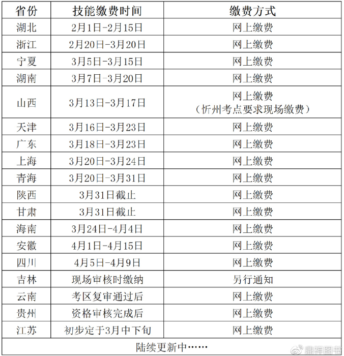 技能缴费关乎你能否顺利参加考试,各位考生一定要重视起来,及时缴费,千万别错过!