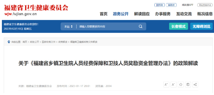 近日,福建省卫生健康委、财政厅出台《福建省乡镇卫生院人员经费保障和卫技人员奖励资金管理办法》。文件强调,加大对乡镇卫生院投入力度,建立人员经费保障制度。