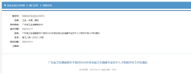 广东省卫健委发布了《广东省卫生健康委关于做好2022年度全省卫生健康专业技术人才职称评审工作的通知》,里面对做好2022年度全省卫生健康专业技术人才职称评审工作,从申报人员范围、申报途径、评审专业、申报条件、申报程序及时间、申报材料要求、评审、公示及发证、倾斜措施等多个方面进行了说明,关乎卫生职称评审,快来一起了解下: