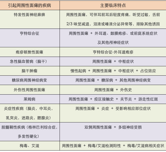 一表总结:引起周围性面瘫的 11 种疾病及特点